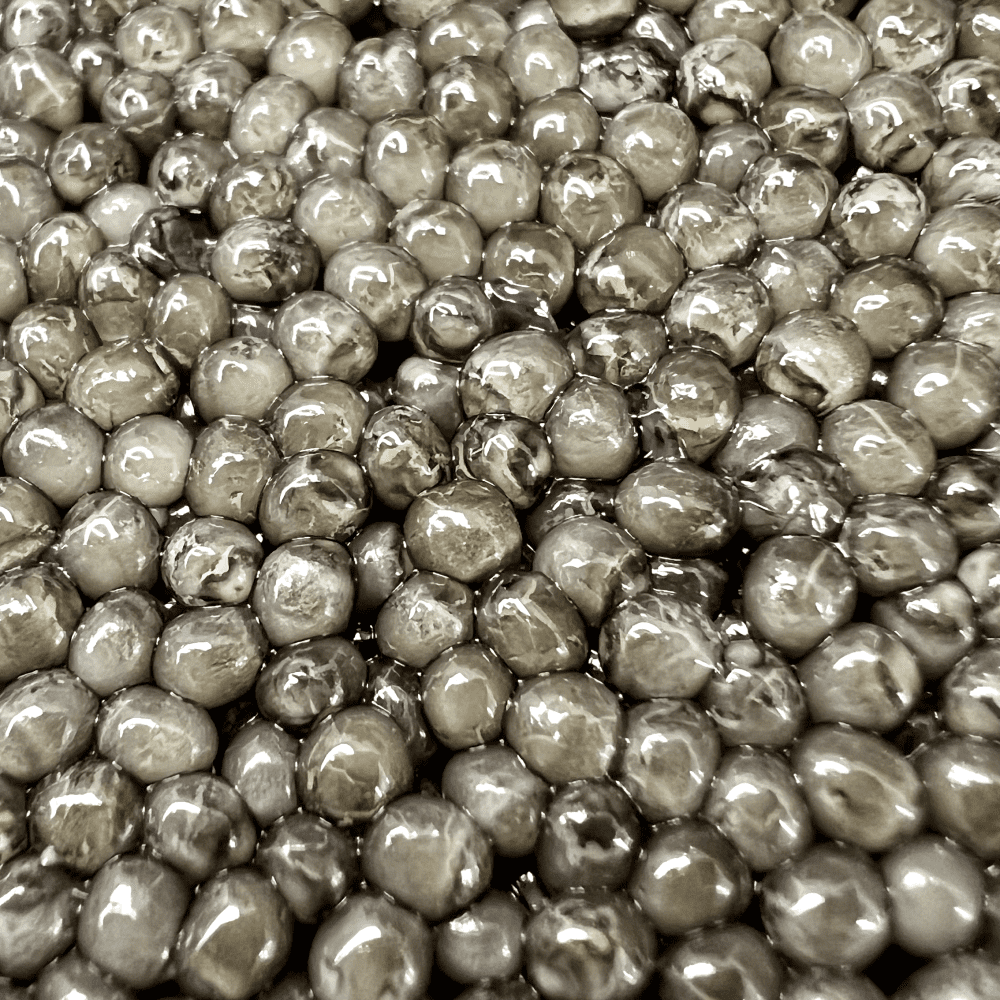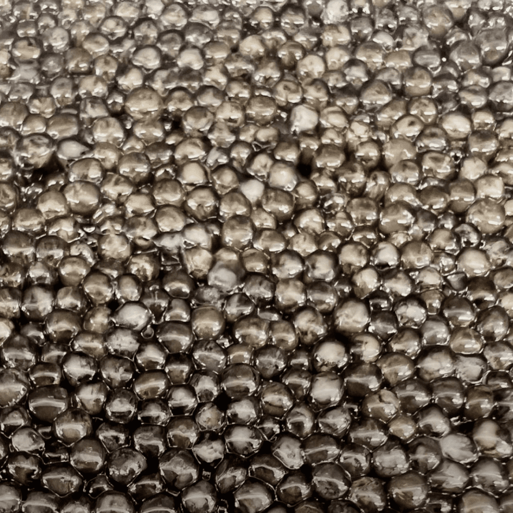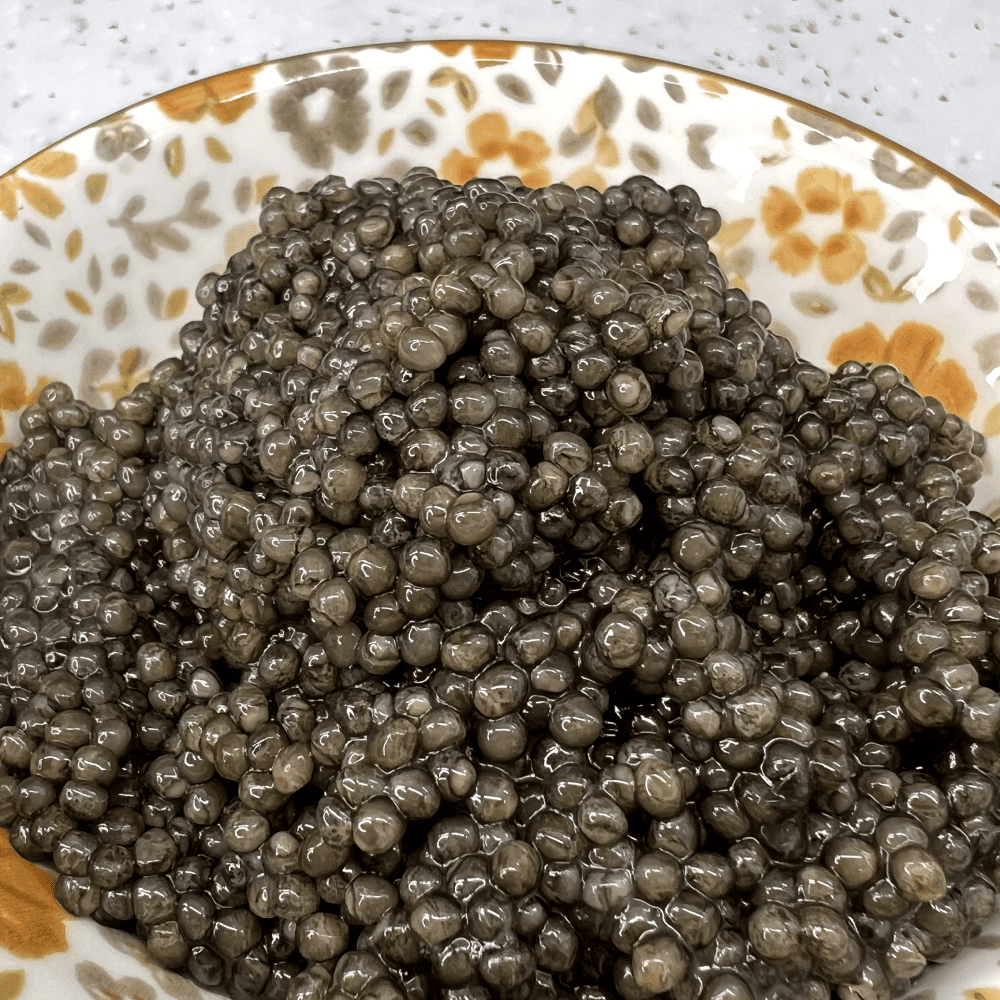 Ця ікра має невелику ніжну проте пружну ікринку, колір може переливатись від темного чорного до сірого. Ікра сухенька, без додаткової рідини.