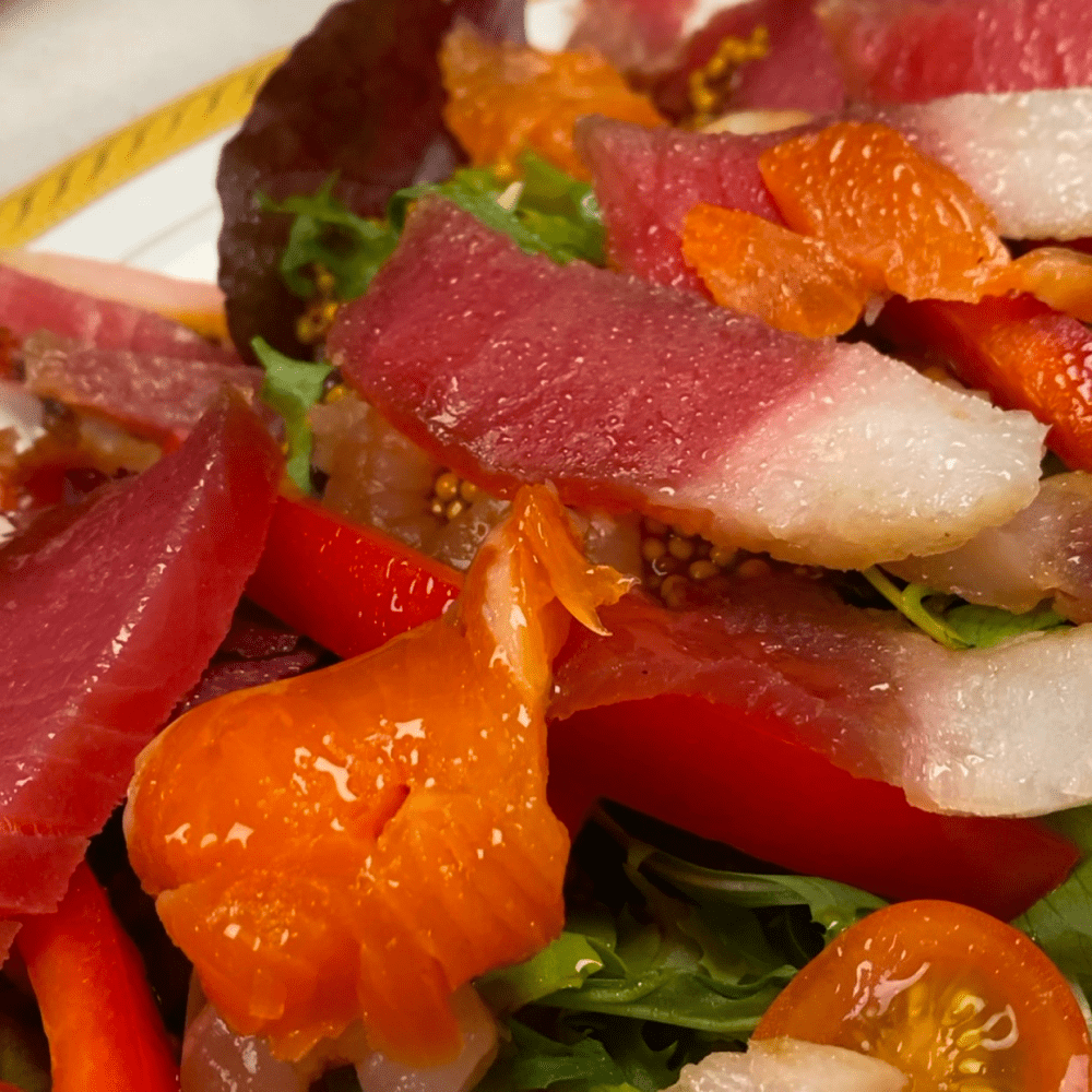 Салатний мікс рулетів може міcтити обрізки рулетів, слабооленої та слабокопченої риби.